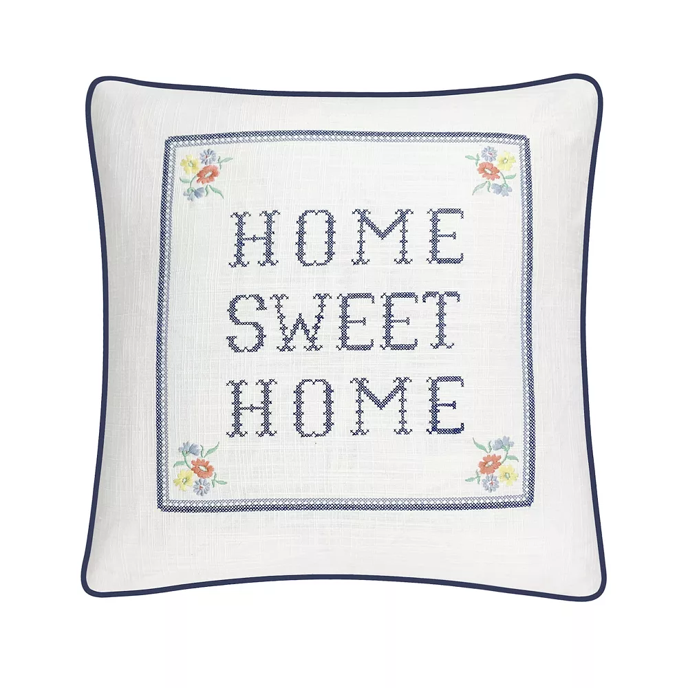 Make your home feel cozy with this pillow that features the classic saying “Home Sweet Home.”