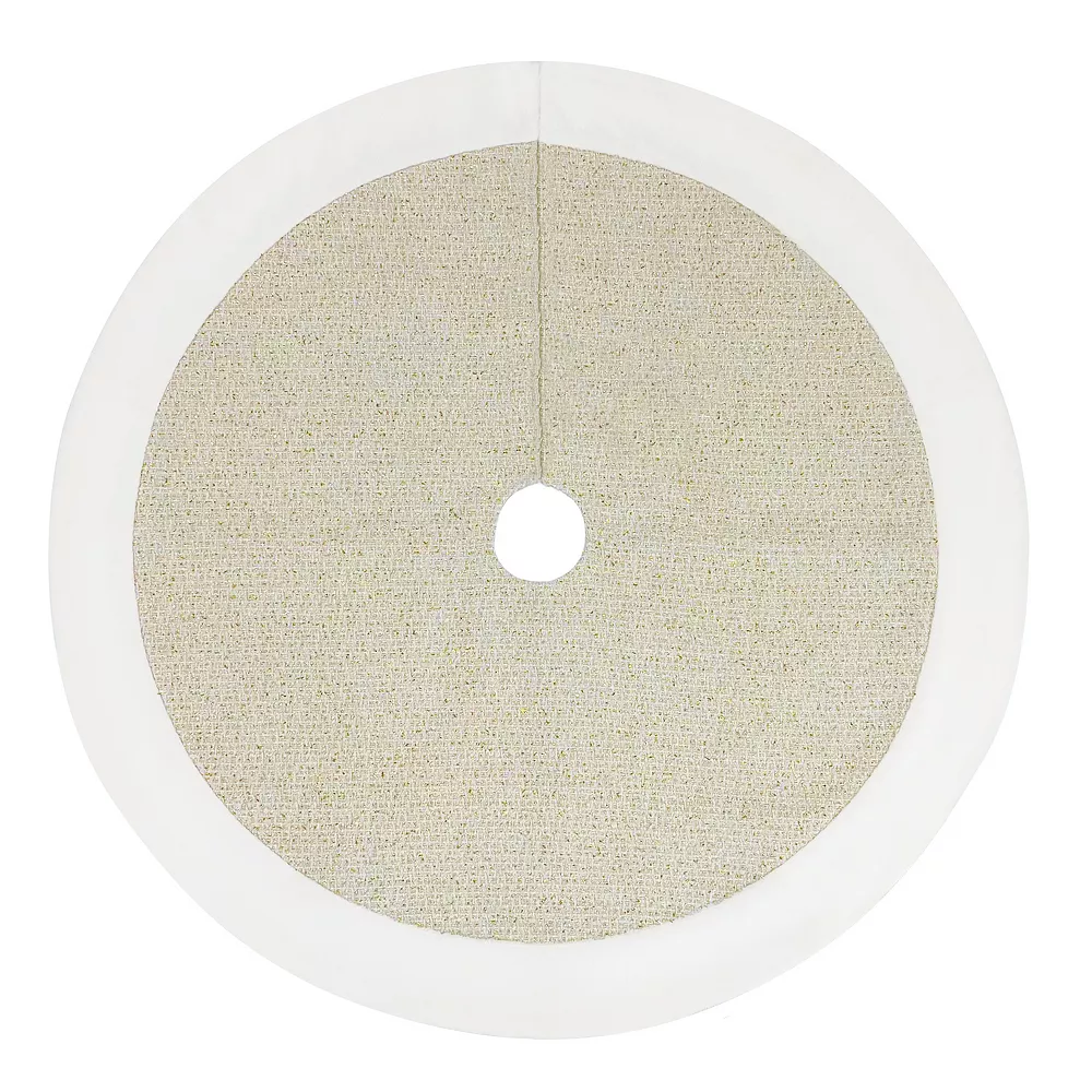 Create the perfect holiday ambiance with this St. Nicholas Square® White & Gold Tree Skirt.